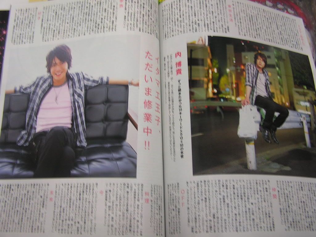 今天最后再將就看看5.22出刊的7月號MYOJO,BT是「板前王子? 現在正在修業中」,這次的訪談分成10個主題,每個主題有5個子題,兒子總共回答了50個問題,從中可以知道他最近的生活和拍戲的近況,以及內心世界的一些分享。。。