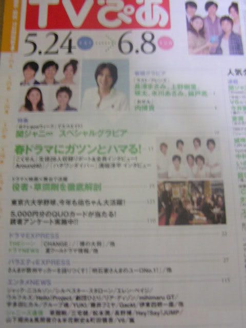 終於有時間上網了,星期三一早就買了「TV STATION」和「TV PIA」,,在日本沒辦法掃描,等回去如果壇子還沒有圖,再掃圖上來放著吧;先將就看看用相機拍下的圖,另去了「おせん」的許多拍攝場景,連同在原宿買到兒子在PZ期間的2張偷拍照,及NTV的「おせん」海報﹙兒子小圖的清晰版﹚,等會兒再慢慢放圖上來。。。