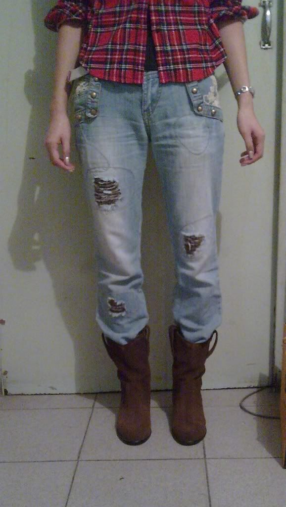 我却不行,感觉非得穿紧身那种牛仔库才能装下靴子。