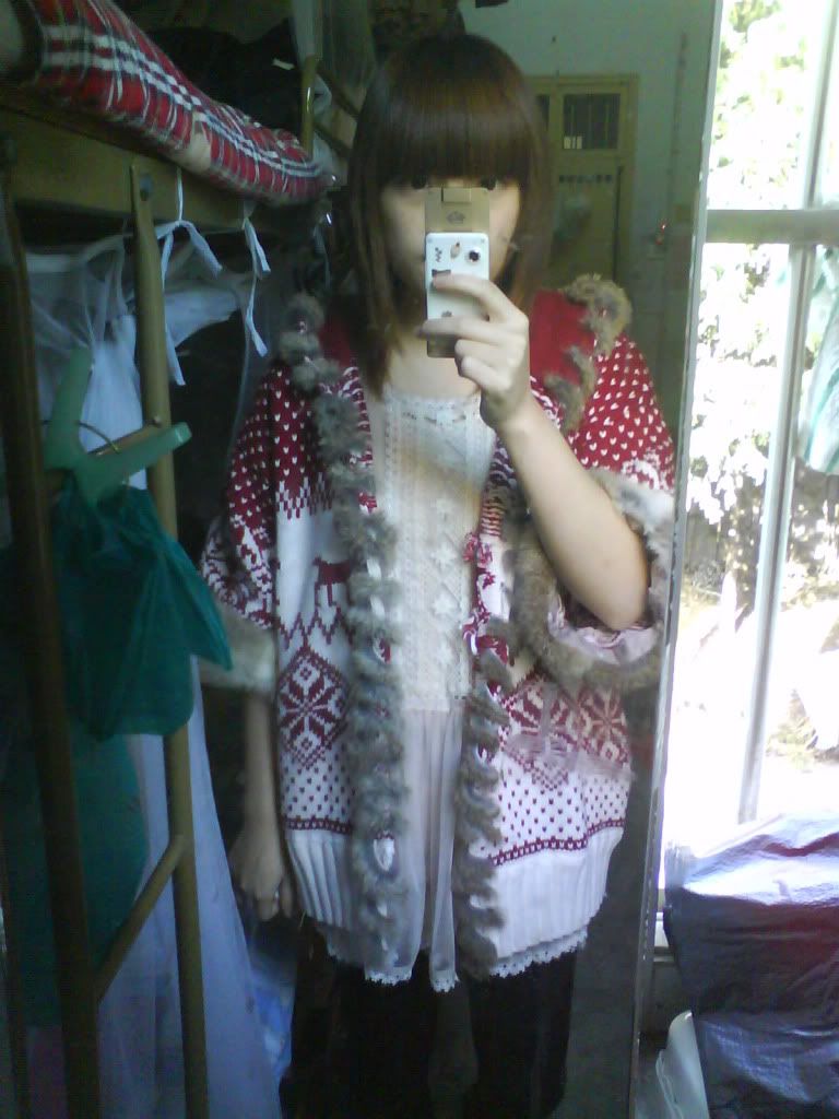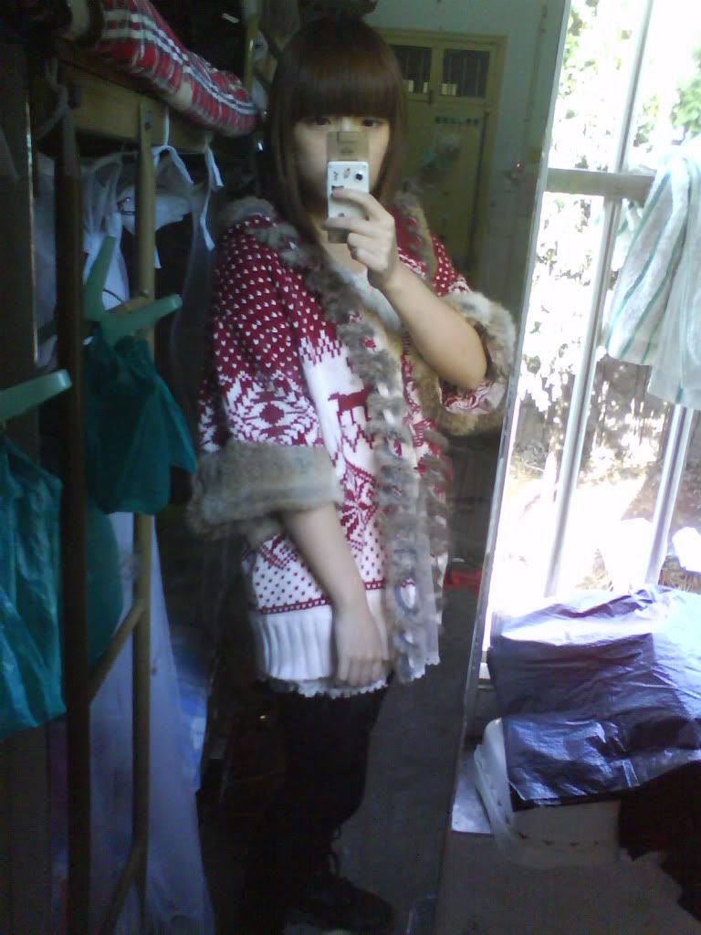 雪花麋鹿针织皮草毛衣外套大衣拿到手了