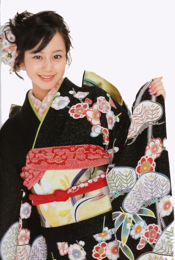 甜心也有张菜花这样姿势的和服照。不过戴了三朵花。fufufu~