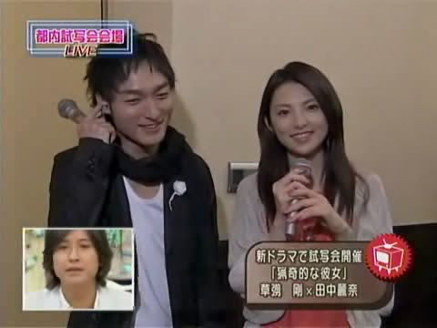 SMAPの草ナギ剛(33)が主演するTBS系ドラマ「猟奇的な彼女」(20日スタート、日曜?後9時)の初回上映会が12日、東京?六本木のTOHOシネマズで行われ、草ナギやヒロイン役の田中麗奈(27)らが舞台あいさつに立った。
