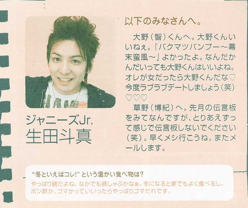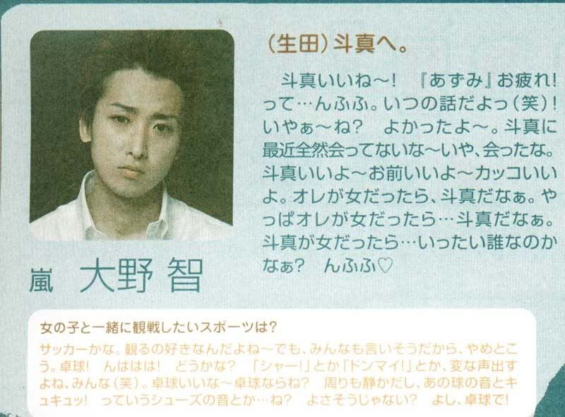大野在广播里说“和斗真?唔...沒有太多話說呢。好像呢...嘛~斗真也有說,做不到和氣滿滿的氣氛呢~”