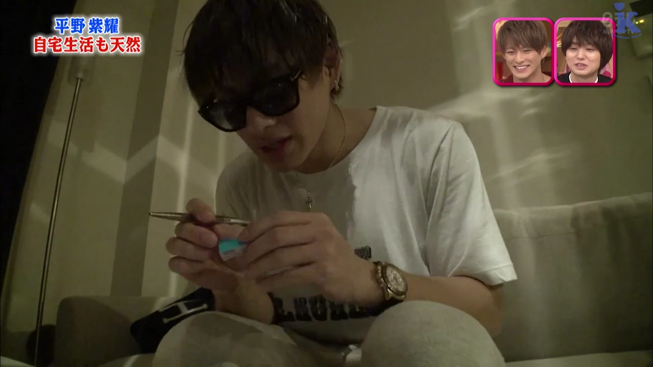 玉森裕太「前段时间,永濑廉来我家过夜了。永濑来看我的舞台『DREAM BOYS』,演出结束后我们一起去吃了晚饭。感觉已经很晚了,我就跟他说「如果太晚回不去的话,来我家过夜也可以哦」。结果,他就来我家住了。永濑还问我「以后每周都来住一次OK吗?」,「这个不可以!」我郑重地拒绝了他(笑)。每周都来住一次不可能吧(笑)。」
