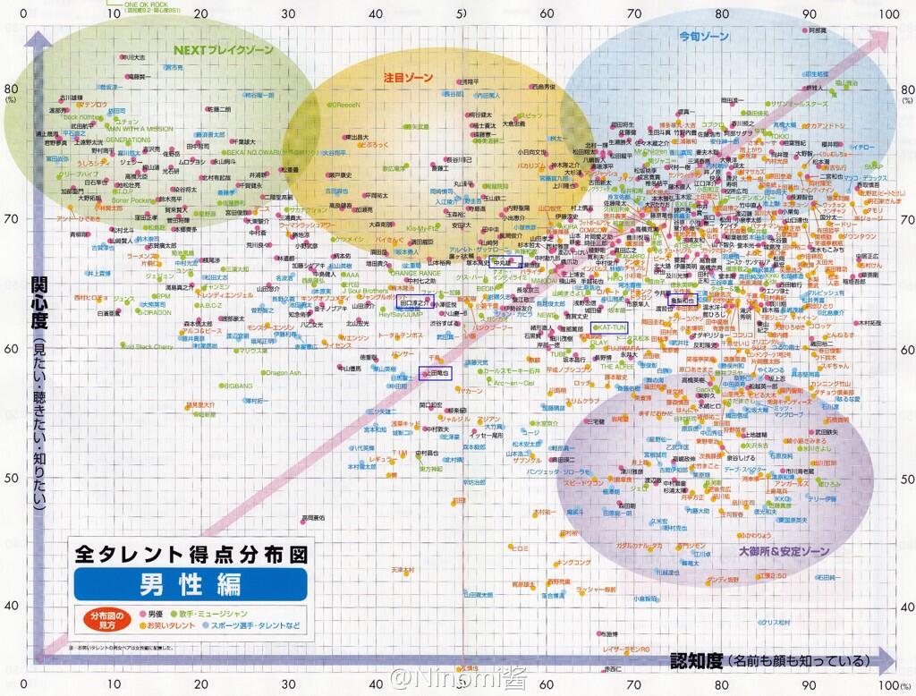 玉森掉的真快,去年还在急上升一位,今年一下子毫无踪影了。脚团BACK上的挺快,卖苦情看来真心有人吃这套嘛,他们的不细工番组还挺有意思的。。。。。