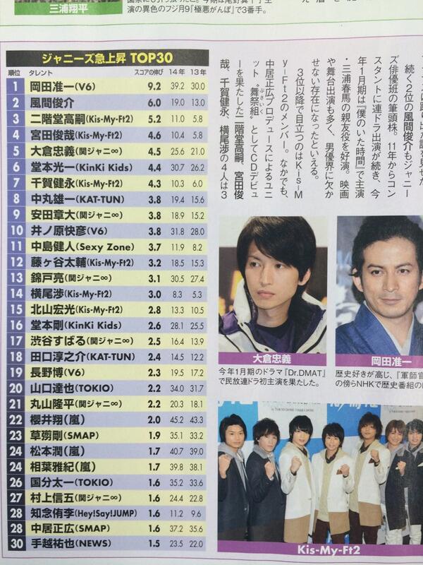 玉森掉的真快,去年还在急上升一位,今年一下子毫无踪影了。脚团BACK上的挺快,卖苦情看来真心有人吃这套嘛,他们的不细工番组还挺有意思的。。。。。=======