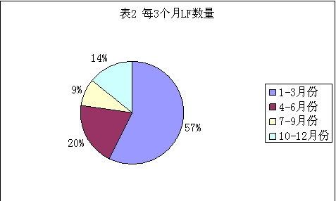 已经知道,51从准备到正式演出ES,时间集中在1月、2月和3月。如图1可知道,2006年中,1月发出的LF数量最多,2月次之,3月随后。如图2可知道,1月至3月发出的LF数量占2006年全年LF数量的57%。